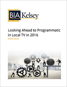 CHANTILLY, Va. (March 2, 2016) – A new BIA/Kelsey Insight Paper examines the promise of programmatic advertising in local TV. “Looking Ahead to Programmatic in Local TV in 2016” includes a brief historical perspective of programmatic TV, and features interviews with a panel of industry experts drawn from agencies, data firms and platform companies. For the report, these experts provided answers to a dozen questions, including: